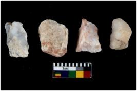 | Description / विवरण | There are n 4 utilized flake cores. There are multidirectional irregular scar pattern on both dorsal and ventral face of the flake cores. One has sharp edges and three have blunted edges. |