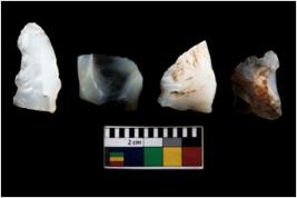 | Description / विवरण | There are n 4 ; worked utilized flakes; there are multidirectional irregular scar pattern on both dorsal and ventral face of the flakes. All are having sharp edges. |