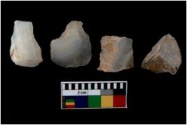 | Description / विवरण | There are n 4 utilized flake cores. There are multi directional irregular scar pattern on them. Three have blunted edges and one has round edge. |