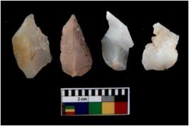 | Description / विवरण | There are n 4 utilized flake cores. There are multi directional irregular scar pattern on them. Three have sharp edges and one is tapering at one end. |