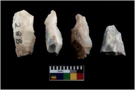 | Description / विवरण | Specimen of flake tools with prominent flaking marks. They are made up of a short flakes with sides trimmed. |