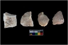 | Description / विवरण | There are n 4 utilized flake cores. There are multidirectional irregular scar pattern on both dorsal and ventral face of the flake cores. One has sharp edges and three have blunted edges. |
