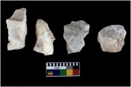 | Description / विवरण | Specimen of flake tools with prominent flaking marks. They are made up of a short flakes with sides trimmed. |