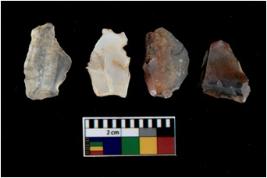 | Description / विवरण | There are n 4 utilized flake cores. There are multi directional irregular scar pattern on them. Three are tapering at one end and one has blunted edge. |