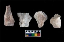 | Description / विवरण | There are n 4 utilized flake cores. There are multidirectional irregular scar pattern on both dorsal and ventral face of the flake cores. One has sharp edges and three have blunted edges. |