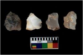 | Description / विवरण | There are n 4 utilized flake cores. There are multi directional irregular scar pattern on them. Three have blunted edges and one has round edge. |