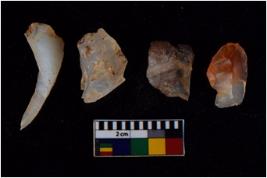 | Description / विवरण | There are n 4 of utilized worked cores and have irregular dominant scar pattern. One has a flat base. |