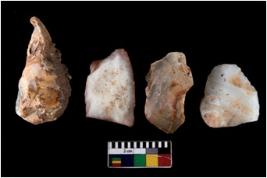 | Description / विवरण | There are n 4 ; worked utilized flakes; there are multidirectional irregular scar pattern on both dorsal and ventral face of the flakes. All are having sharp edges. |