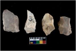 | Description / विवरण | Specimen of flake tools with prominent flaking marks. They are made up of a short flakes with sides trimmed. |