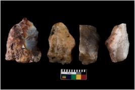 | Description / विवरण | There are n 4 ; worked utilized flakes; there are multidirectional irregular scar pattern on both dorsal and ventral face of the flakes. All are having sharp edges. |