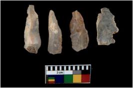 | Description / विवरण | There are n 4 utilized flake cores. There are multi directional irregular scar pattern on them. All of them are tapering at one end. |