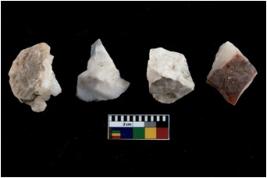 | Description / विवरण | There are n 4 utilized flake cores. There are multidirectional irregular scar pattern on both dorsal and ventral face of the flake cores. One has sharp edges and three have blunted edges. |