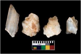 | Description / विवरण | There are n 4 ; worked utilized flakes; there are multidirectional irregular scar pattern on both dorsal and ventral face of the flakes. All are having sharp edges. |
