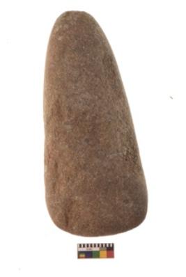 | Description / विवरण | Specimen of triangular shaped Axe with lenticular section and pointed butt. It is under side flat and blunt edge. |