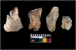 | Description / विवरण | There are n 4 ; worked utilized flakes; there are multidirectional irregular scar pattern on both dorsal and ventral face of the flakes. All are having sharp edges. |