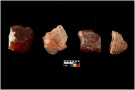 | Description / विवरण | There are n 4 cores; there are multidirectional irregular scar pattern on them. The reverse bulb and platform can be seen. |