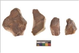 | Description / विवरण | Specimen of flake tools with prominent flaking marks. They are made up of a short flakes with sides trimmed. |