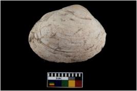 | Description / विवरण | Specimen of a large bivalve marine shell with sharp edge. Probably use as spoon. |