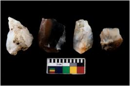 | Description / विवरण | There are n 4 ; worked utilized flakes; there are multidirectional irregular scar pattern on both dorsal and ventral face of the flakes. All are having sharp edges. |