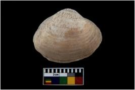 | Description / विवरण | Specimen of a large bivalve marine shell with ground edge. Probably use as spoon. |