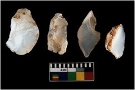 | Description / विवरण | There are n 4 ; worked utilized flakes; there are multidirectional irregular scar pattern on both dorsal and ventral face of the flakes. All are having sharp edges. |