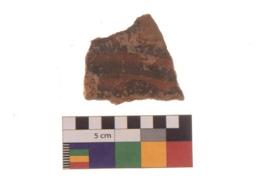 | Description / विवरण | Specimen of Potsherd black on red painted pottery. It is fine fabric in sharp contrast with painted design are executed in black pigment. |