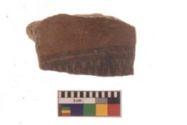 | Description / विवरण | Specimen of a Potsherd with black decorative geometric painting on it.It is set of two zigzag bands. |