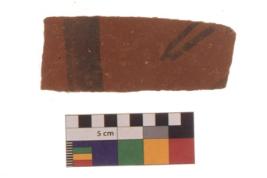 | Description / विवरण | Specimen of Potsherd black on red painted pottery. It is fine fabric in sharp contrast with painted design are executed in black pigment. |