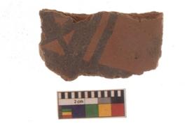 | Description / विवरण | Specimen of Potsherd black on red painted pottery. It is fine fabric in sharp contrast with painted design are executed in black pigment. |