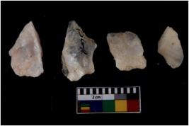 | Description / विवरण | There are n 4 flake cores. All of them are fully fluted flake cores without any trace of crested ridge flakes. Some are tapering at one end and some have blunted edges. |