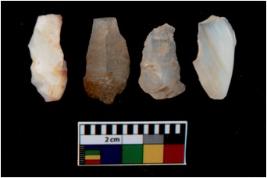 | Description / विवरण | There are n 4 utilized flake cores. There are multi directional irregular scar pattern on them. All of them are tapering at one end. |