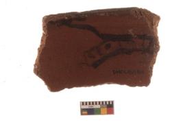 | Description / विवरण | Specimen of Potsherd black on red painted pottery. It is fine fabric in sharp contrast with painted design are executed in black pigment. |