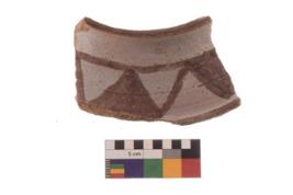 | Description / विवरण | Specimen of Potsherd black on red painted pottery. It is fine fabric in sharp contrast with painted design are executed in white and red pigment. |