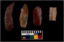 | Description / विवरण | There are n 4 Flake tool; There are multidirectional irregular scar pattern on them. few have blunt edges, Some of them are tapering at one end. |
