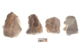 | Description / विवरण | There are n 4 utilized flakes. There are multi directional irregular scar pattern on both dorsal and ventral face of the flakes. Two are tapering at one end and two have sharp edges. |