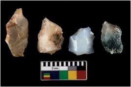 | Description / विवरण | There are n 4 ; worked utilized flakes; there are multidirectional irregular scar pattern on both dorsal and ventral face of the flakes. All are having sharp edges. |
