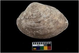 | Description / विवरण | Specimen of a large bivalve marine shell with sharp edge. Probably use as spoon. |