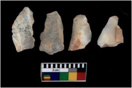 | Description / विवरण | There are n 4 utilized flake cores. There are multi directional irregular scar pattern on them. Three are tapering at one end and one has blunted edge. |