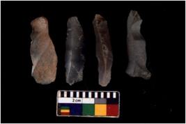 | Description / विवरण | There are n 4 flakes tool; there are flakes with sides trimmed, Marks of secondary flaking are present on the both the faces. The dorsal is relatively flat. |