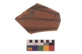 | Description / विवरण | Specimen of Potsherd black on red painted pottery. It is fine fabric in sharp contrast with painted design are executed in black pigment. |