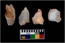 | Description / विवरण | There are n 4 utilized flake cores. There are multi directional irregular scar pattern on them. Three are tapering at one end and one has blunted edge. |