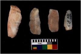 | Description / विवरण | There are n 4 Flake tool; There are multidirectional irregular scar pattern on them. few have blunt edges, Some of them are tapering at one end. |