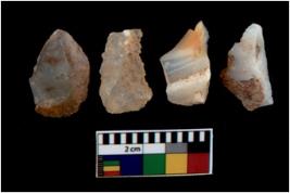 | Description / विवरण | There are n 4 utilized flake cores. There are multi directional irregular scar pattern on them. Three are tapering at one end and one has blunted edge. |