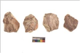 | Description / विवरण | Specimen of flake tools with prominent flaking marks. They are made up of a short flakes with sides trimmed. |