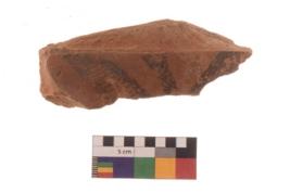 | Description / विवरण | Specimen of Potsherd black on red painted pottery. It is fine fabric in sharp contrast with painted design are executed in black pigment. |