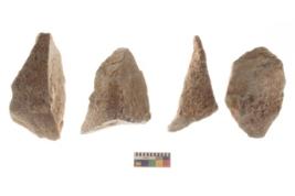 | Description / विवरण | There are n 4 utilized flakes. There are multi directional irregular scar pattern on both dorsal and ventral face of the flakes. two are tapering at one end and one has pen pointed, and one has blunted edge at one end. |