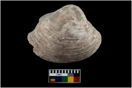 | Description / विवरण | Specimen of a partialy broken large bivalve marine shell with ground edge. Probably use as spoon. |