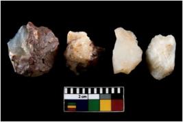 | Description / विवरण | There are n 4 ; worked utilized flakes; there are multidirectional irregular scar pattern on both dorsal and ventral face of the flakes. All are having sharp edges. |