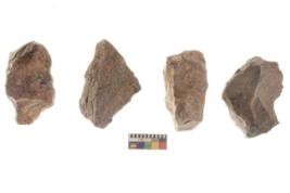 | Description / विवरण | There are n 4 utilized flakes. There are multi directional irregular scar pattern on both dorsal and ventral face of the flakes. two are tapering at one end and two have blunted edges. |