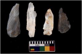 | Description / विवरण | There are n 4 Flake tool; There are multidirectional irregular scar pattern on them. few have blunt edges, Some of them are tapering at one end. |